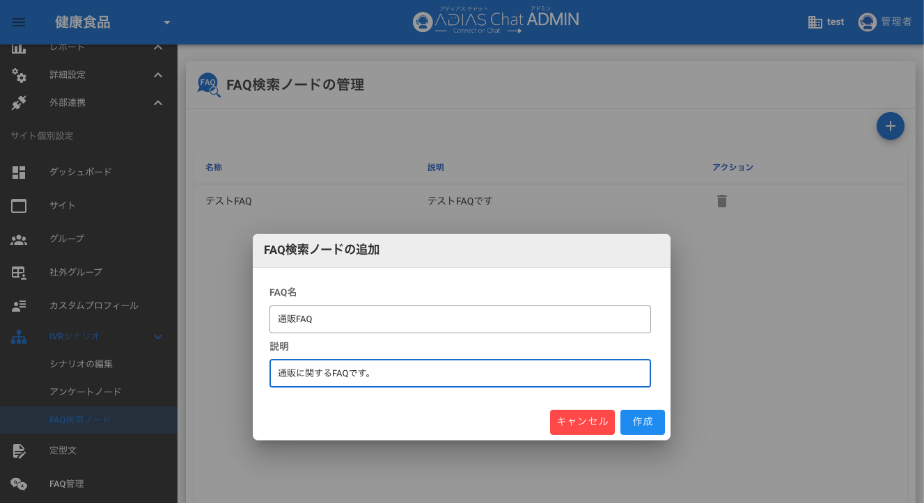 | FAQ名 | FAQの名称です。 【制限】必須、20文字以内 |