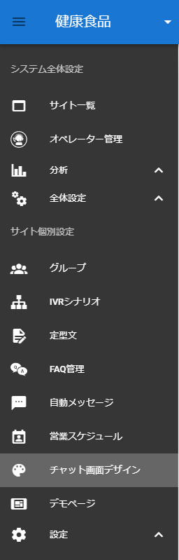 サイドメニューよりチャット画面デザインをクリックして移動します。