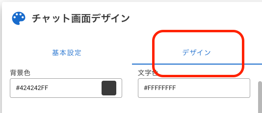 サイドメニューよりチャット画面デザインをクリックして移動します。