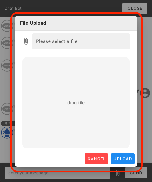 ファイルアップロードダイアログはオペレーターとチャットのやり取り時にファイルを送る際に表示されるダイアログです。