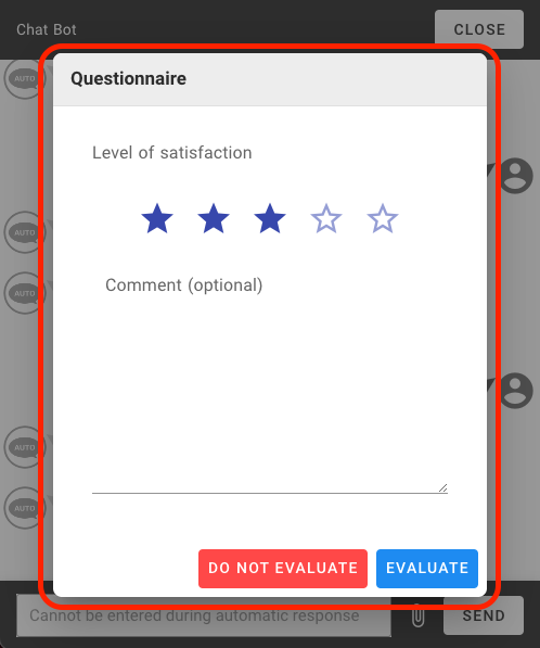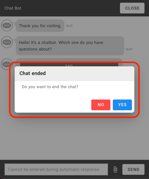 フィードバックダイアログはチャット右上の終了ボタンをクリックしてチャットを終了する際に事前にフィードバックアンケートを表示する際のダイアログです。
