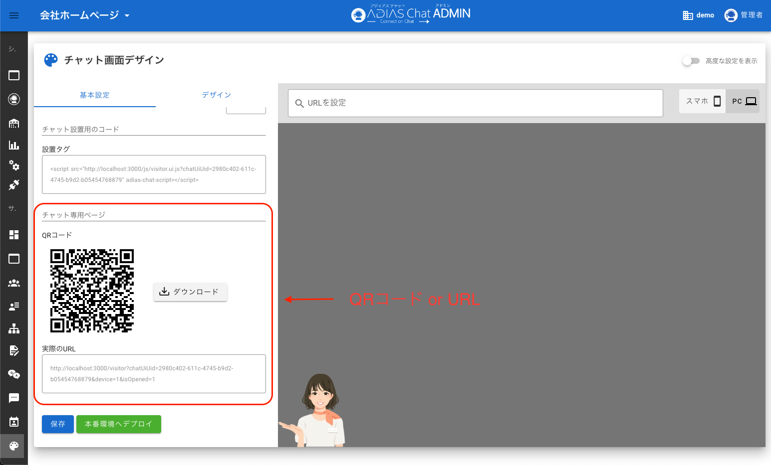 チャット専用ページのURLを取得#