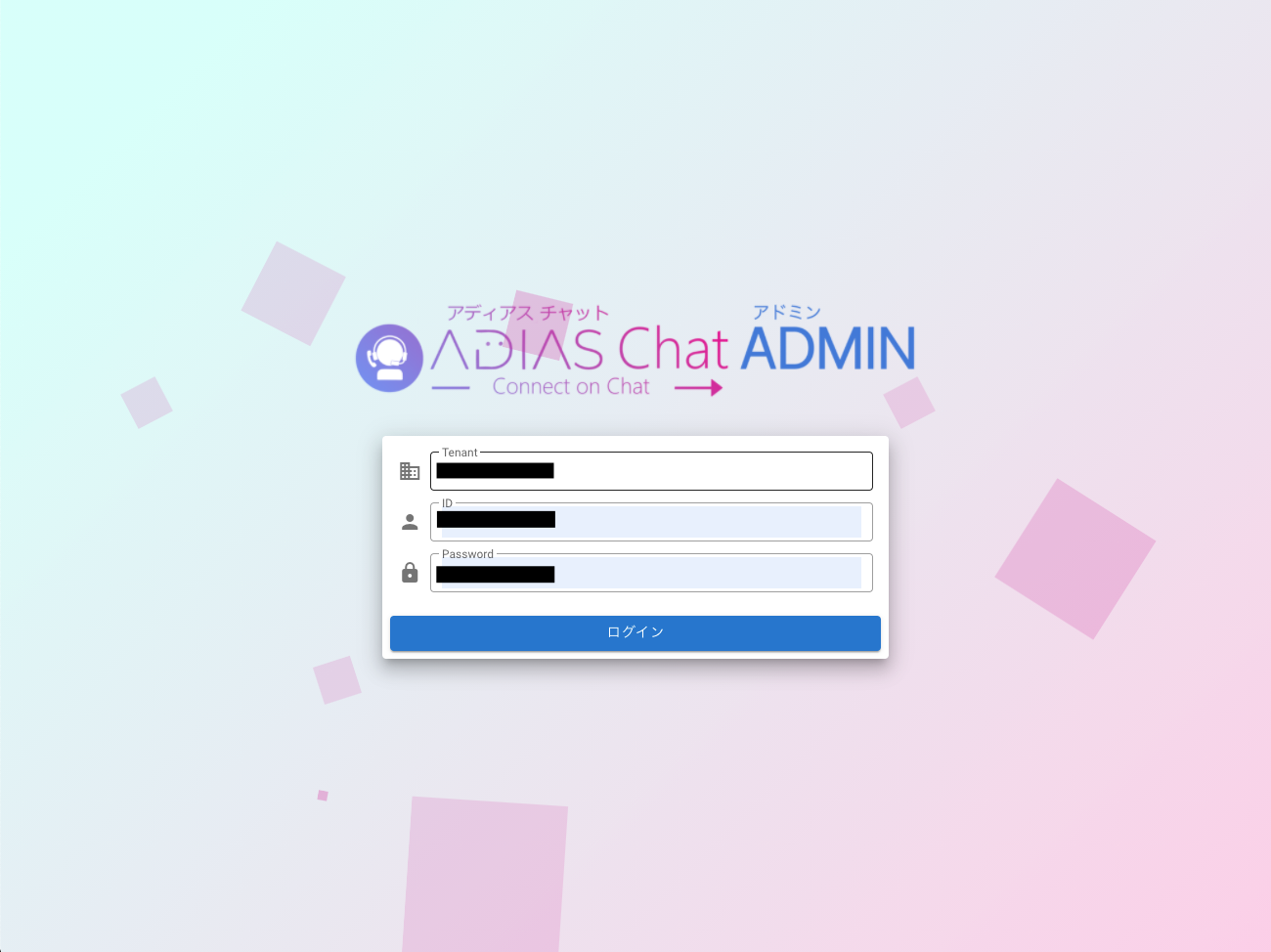 ADIAS Chat ADMINのログイン画面にアクセスして、事前に用意された管理者アカウントでログインしてください。
