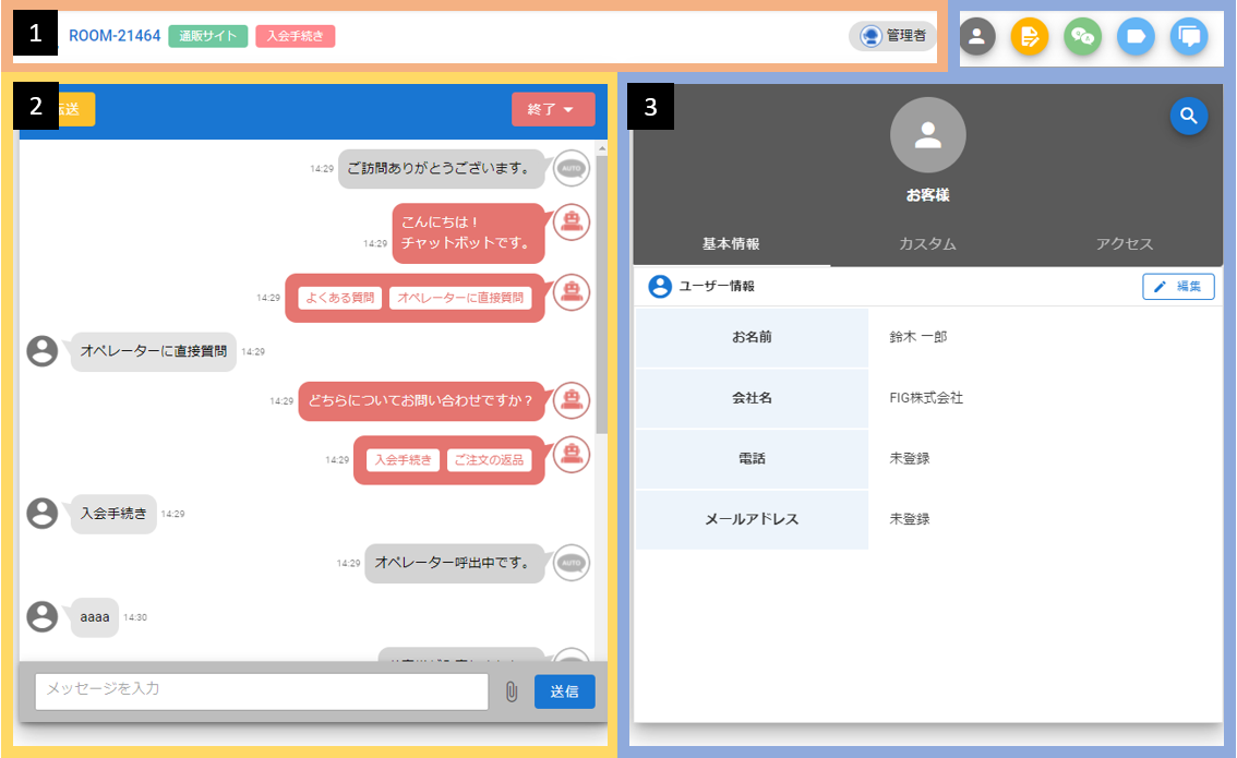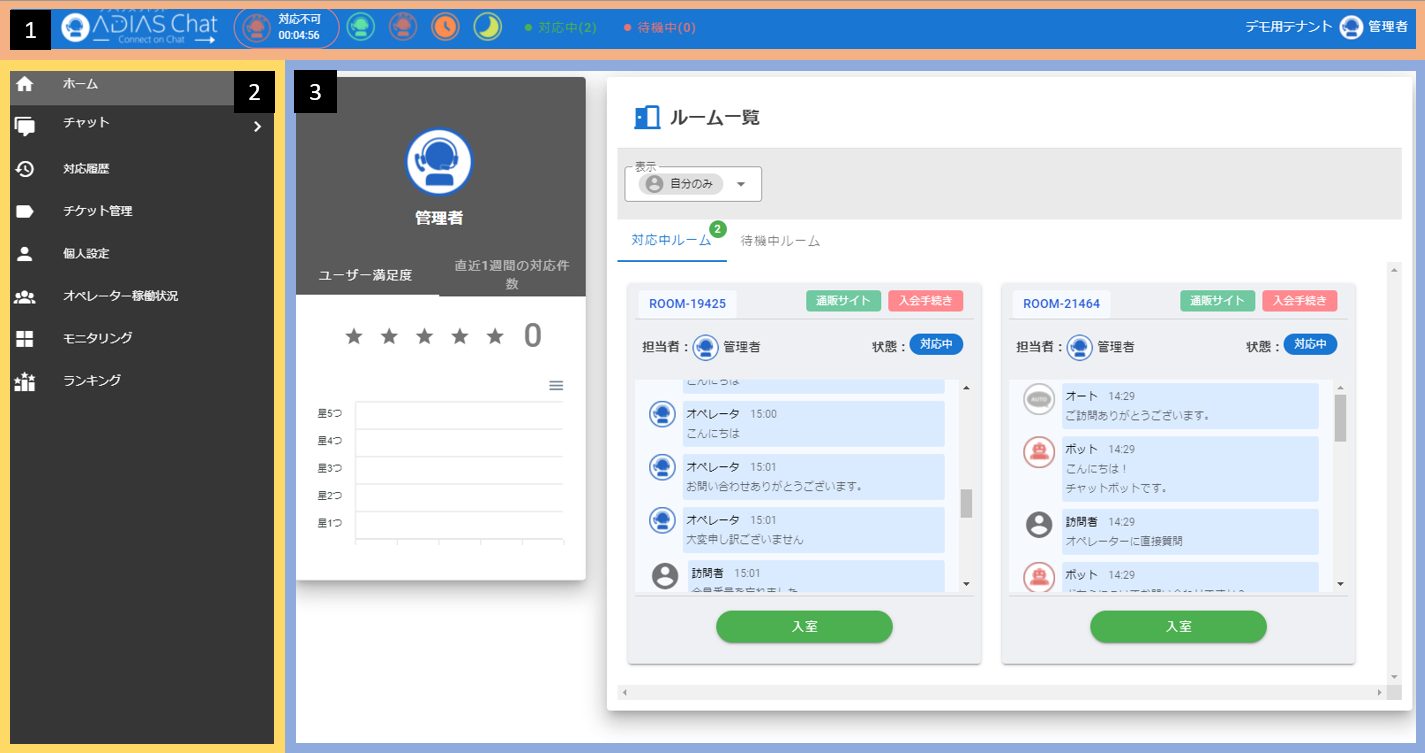 オペレーターステータスの切り替えや、ログアウトなどを行います。