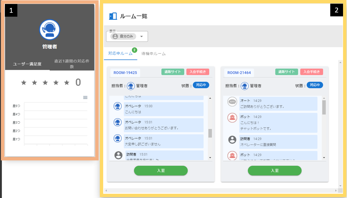 各ルームの入室ボタンをクリックすることで、入室やモニタリングができます。